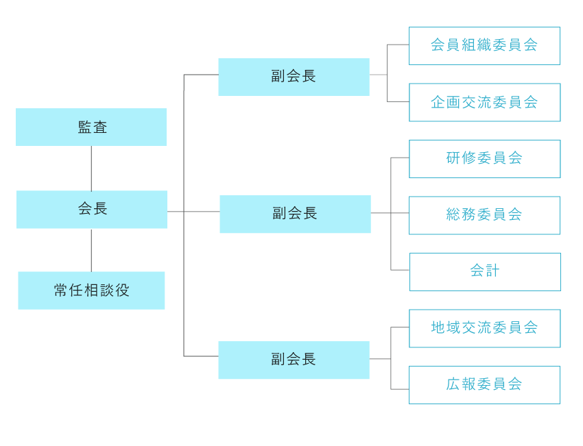 全国で県と女性経営者で継続する唯一の組織です。会の組織の企画運営は互選された幹事による役員会で実施し、埼玉県産業労働部に事務的な支援をいただいています。女性経営者・管理職の異業種によるグループです。